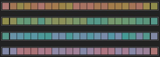Du får se fyra rader med färgnyanser. Försök ordna dem i rätt ordning från vänster till höger. Den första och sista färgen i varje rad är redan på rätt plats.